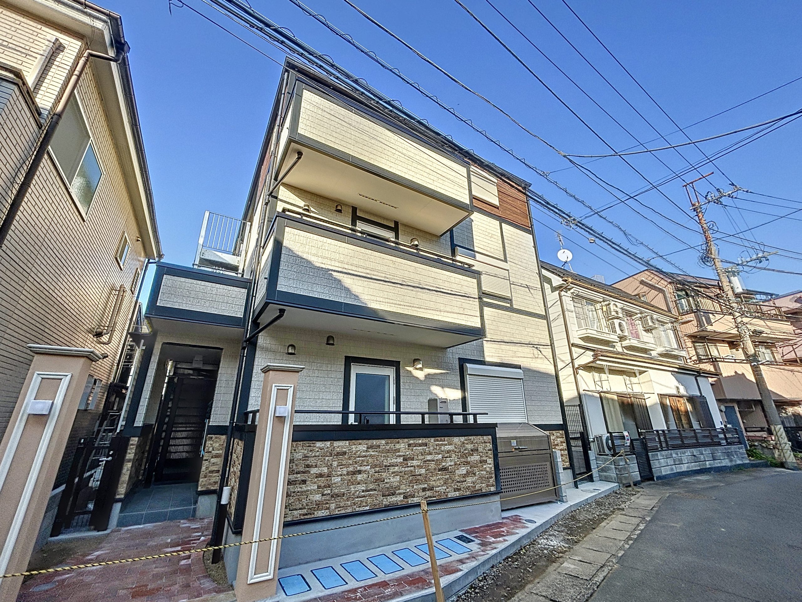 本物件は木造3階建、1LDK2戸×3フロアの合計6戸のアパート。弊社グループ会社の株式会社フロムワンにて原案設計を行い、株式会社武蔵ホーム様(以下、「武蔵ホーム」)に施工頂きました。武蔵ホームは東京都新宿区に本社を置かれている建築設計・施工会社です。内外装・設備等の建築商材メーカーを親会社に持つこと、またショールームや展示場等の維持費、人件費、広告に費用をかけていないことなどから、大手ハウスメーカー様と比較すると安価な建築コストを実現できることが強みであり、溝の口駅周辺でも多くの施工事例をお持ちです。