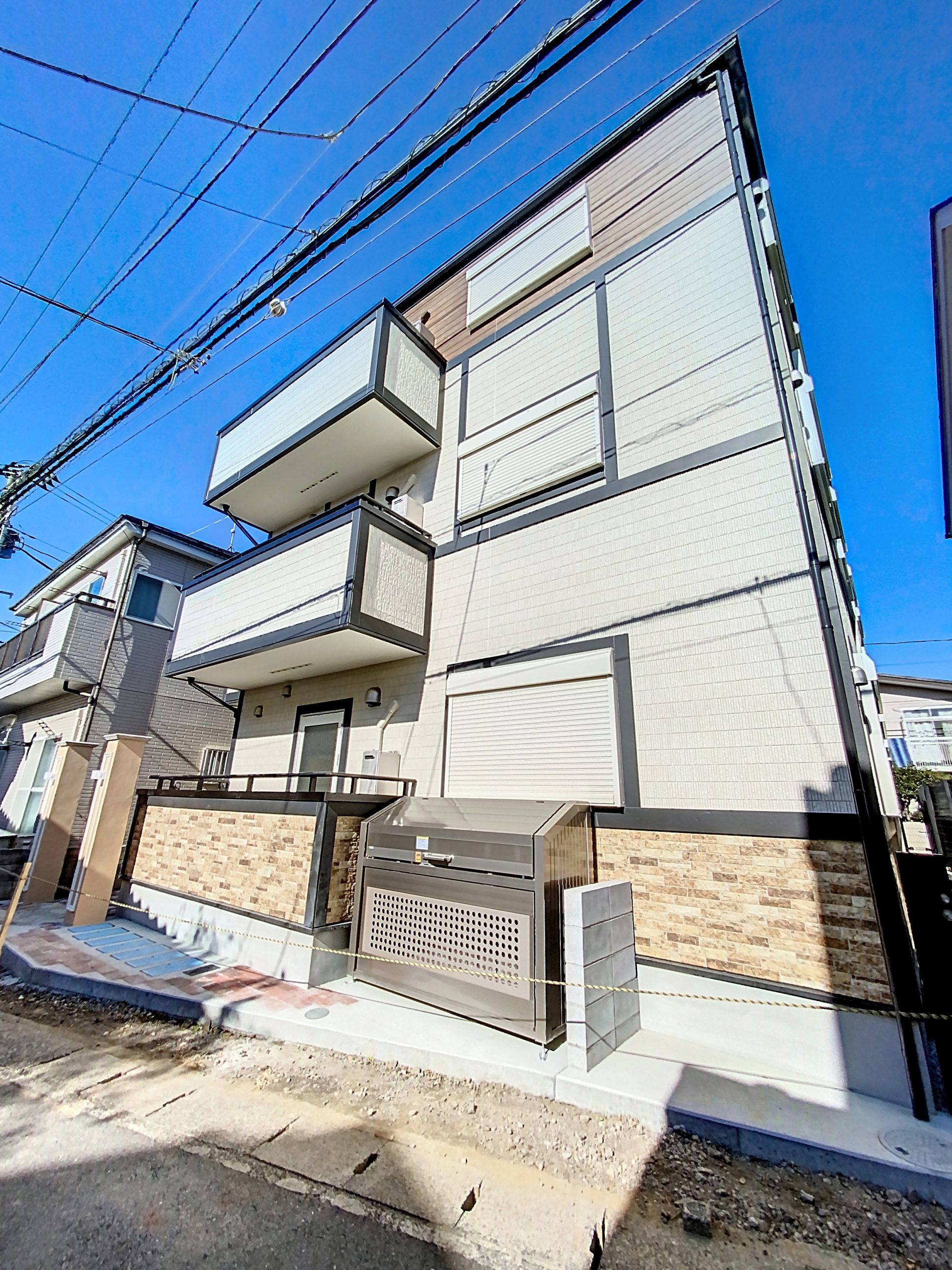 今回の新築は3階建・6戸の木造アパート。各階2戸・全部屋角部屋となるよう設計されており、室内は1LDK・段差のないフルフラットな作りとなっています。壁紙・床材は室内を明るく見えるような色味を採用。駅の校舎をイメージしてデザインしたオーナー様こだわりの外観は、見る人を引き付けるデザインとなっています。