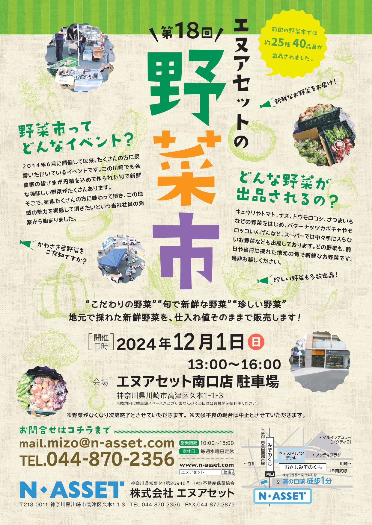 地元川崎でとれる新鮮な野菜を仕入れ値そのままで販売する「エヌアセット野菜市」。