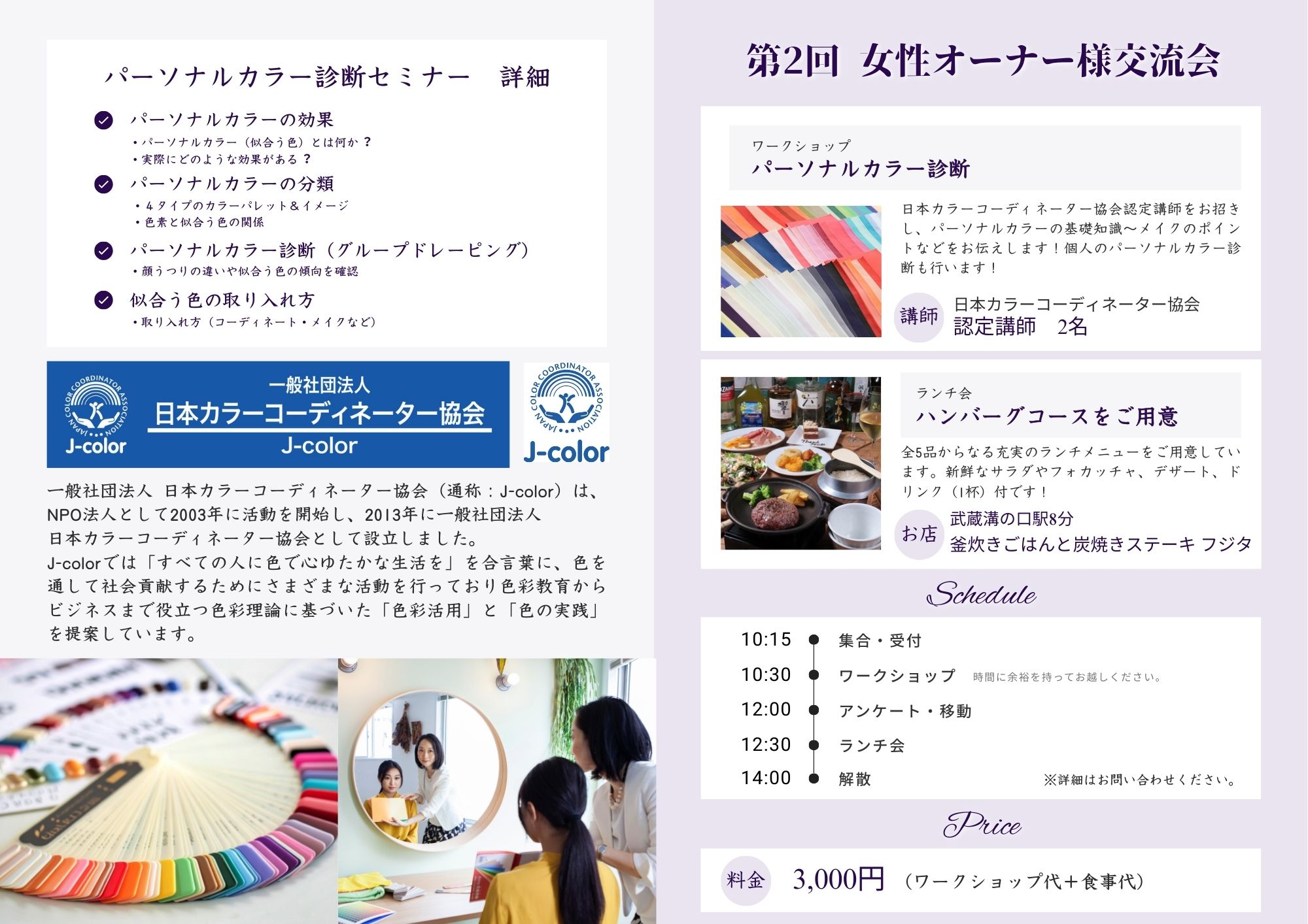 ※当日は日本カラーコーディネート協会認定講師をお招きし、パーソナルカラーの効果を丁寧にお伝えします。