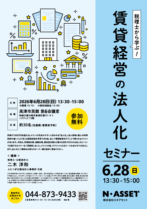 法人化にご興味をお持ちのオーナー様は是非ご参加ください。