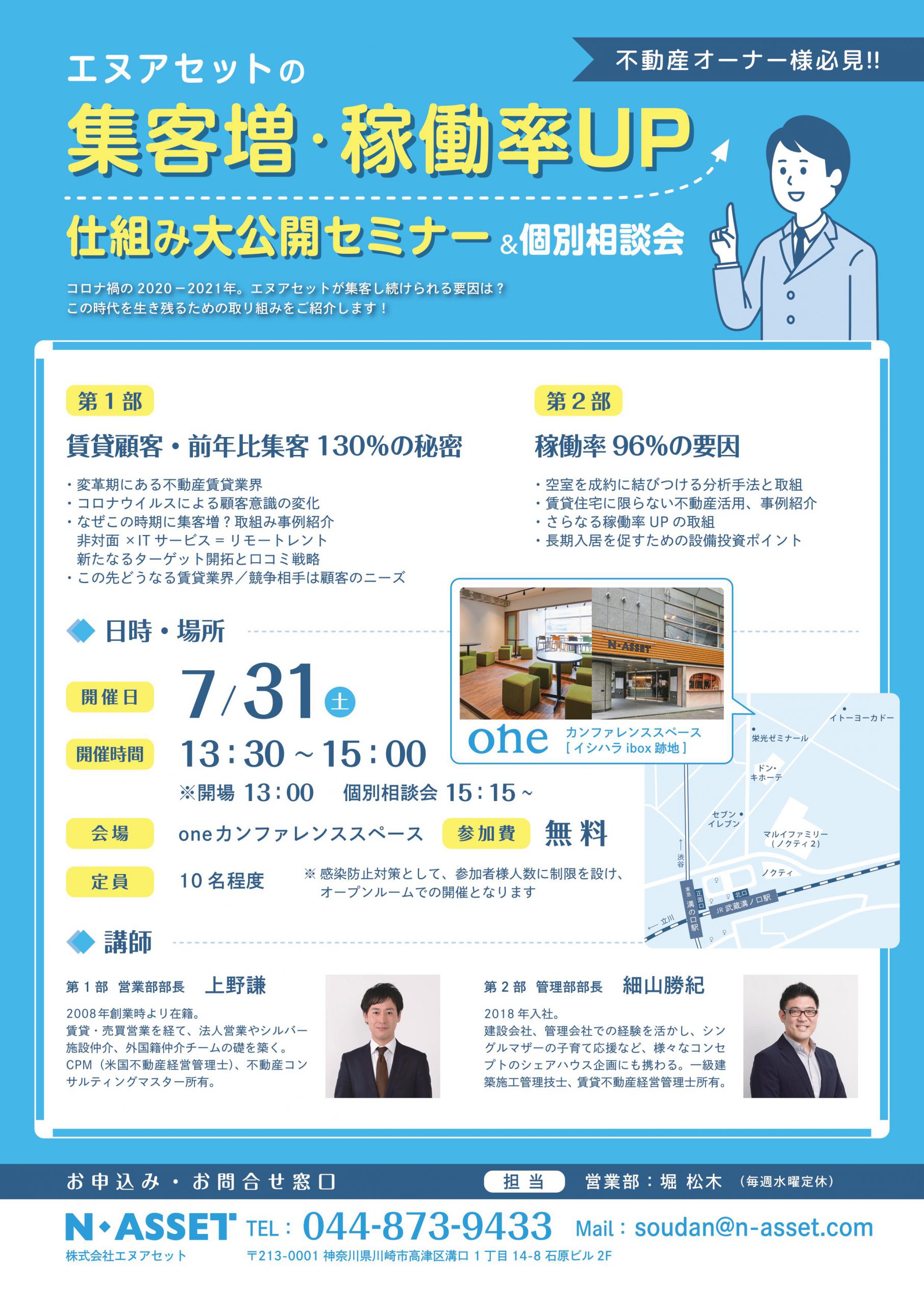 エヌアセットの集客増、稼働率UP 仕組み大公開セミナー & 個別相談会
