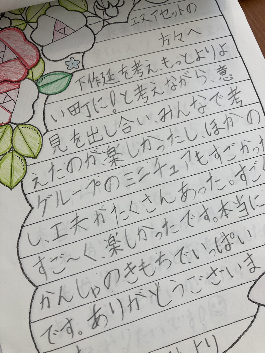 子供たちにこんな街に住みたいなを考えてもらい、それを模型で作ってもらいます。